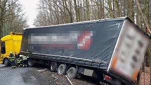 U Felbabky havaroval kamión, při zásahu hasičů zapadlo další nákladní vozidlo