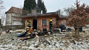 U požáru ve sklepních prostorách rodinného domu zasahují v Kladně profesionální hasiči z Kladna společně s dobrovolnými jednotkami hasičů Braškov a Hřebeč.