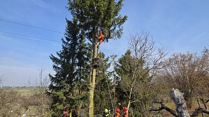 K záchraně osoby, která uvízla na stromě ve výšce cca 6 metrů v Makotřasech po úrazu elektrickým proudem, vyjela kladenská profesionální jednotka včetně lezeckého družstva a automobilového žebříku a také místní dobrovolná jednotka Hřebeč.
